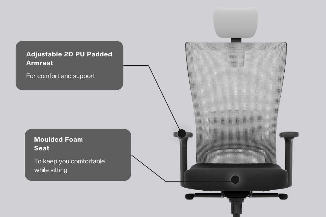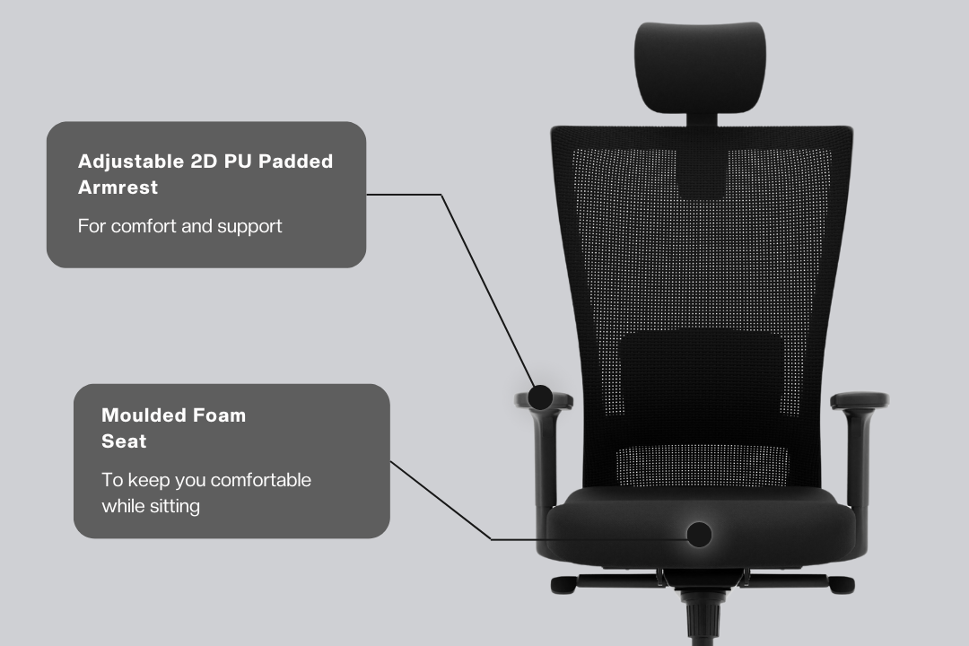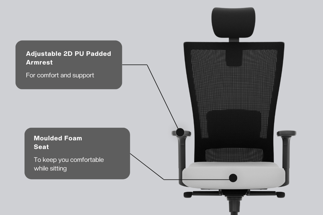 - Custom Comfort: The chair can be seamlessly adjusted with 2D adjustable armrests and height adjustable lumbar support.
