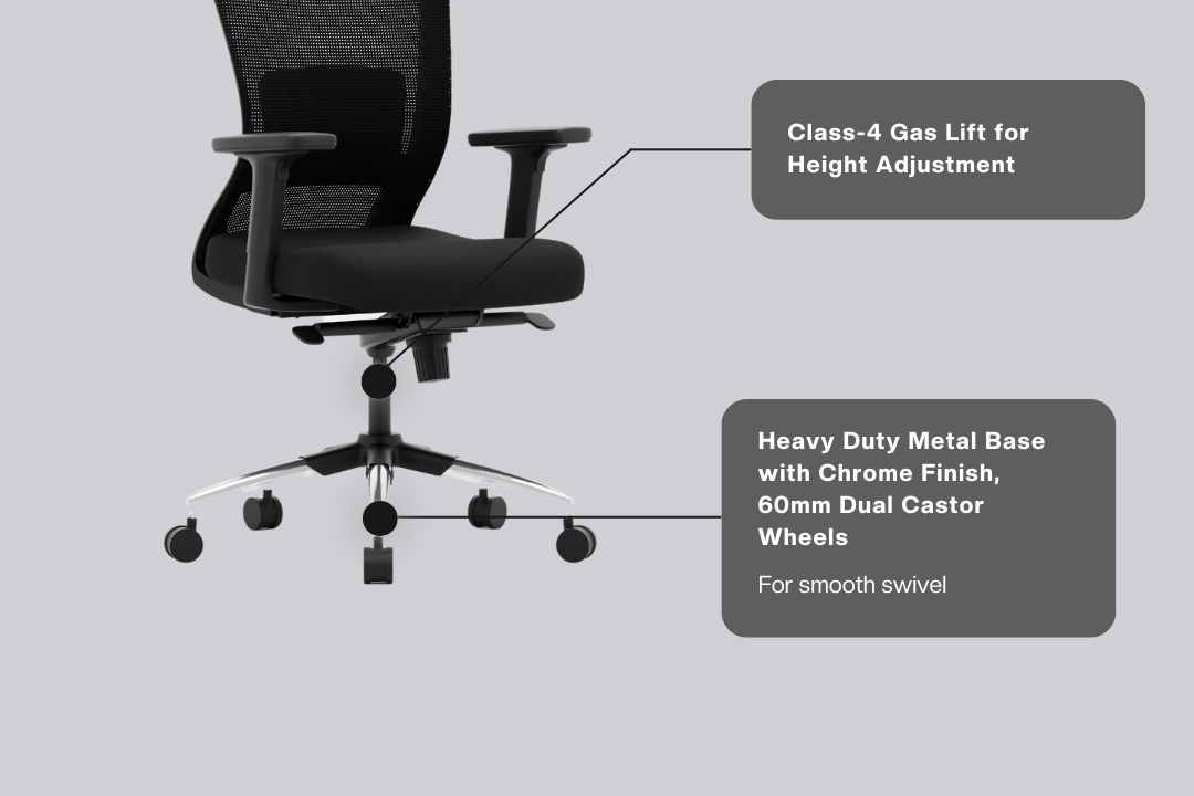 - Smooth Height Adjustability : The Gas-Lift Class 4 Hydraulics allow variations in the height of the chair.