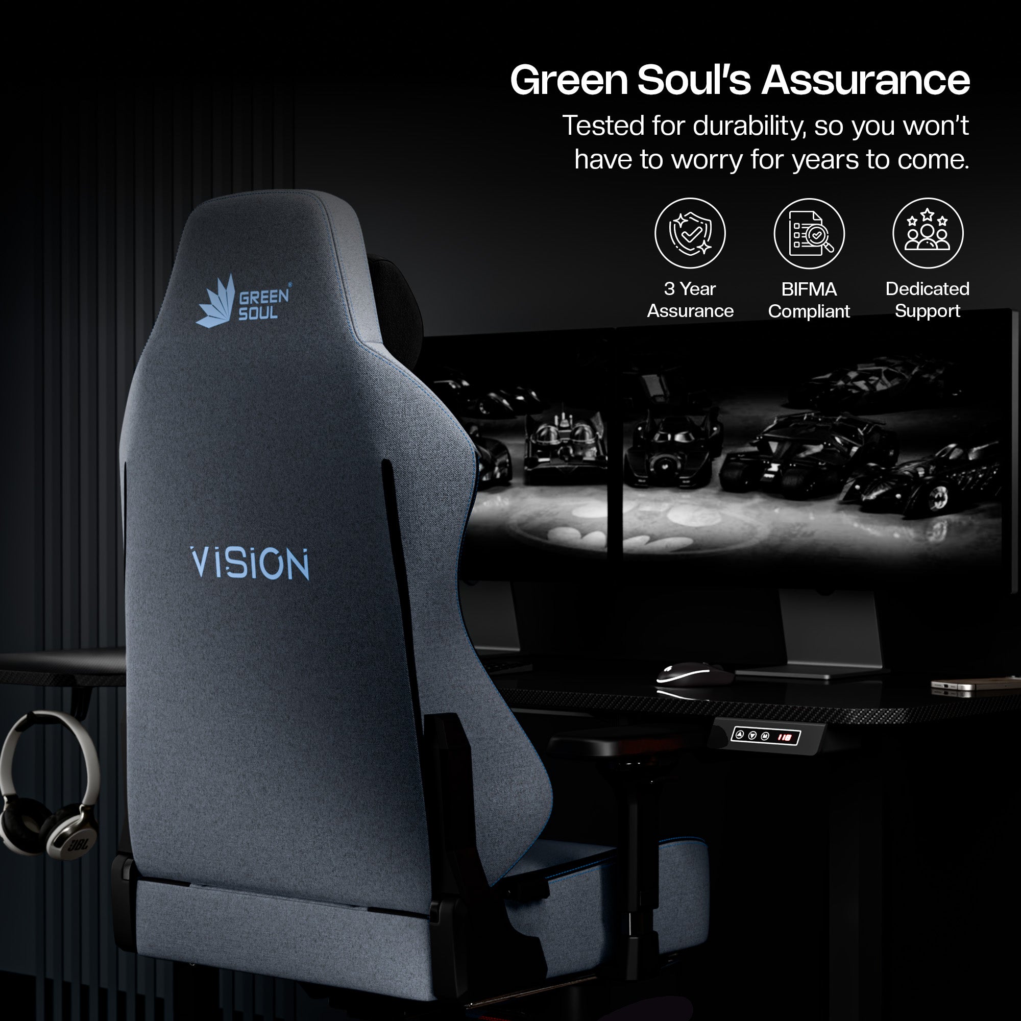 Green Soul Vision Pro V2 Premium Fabric 4D Armrests & Flat Wheelbase Ergonomic Gaming Chair