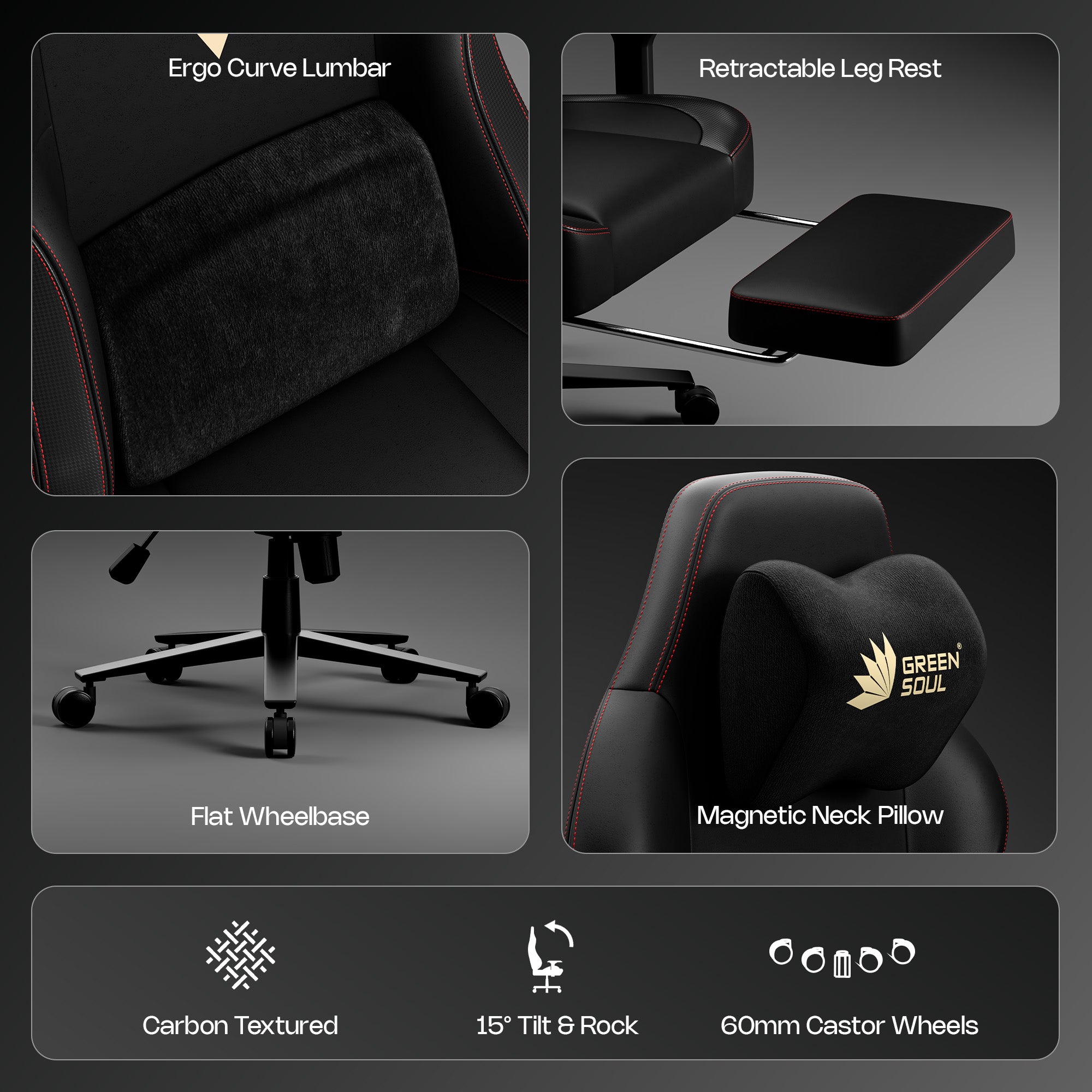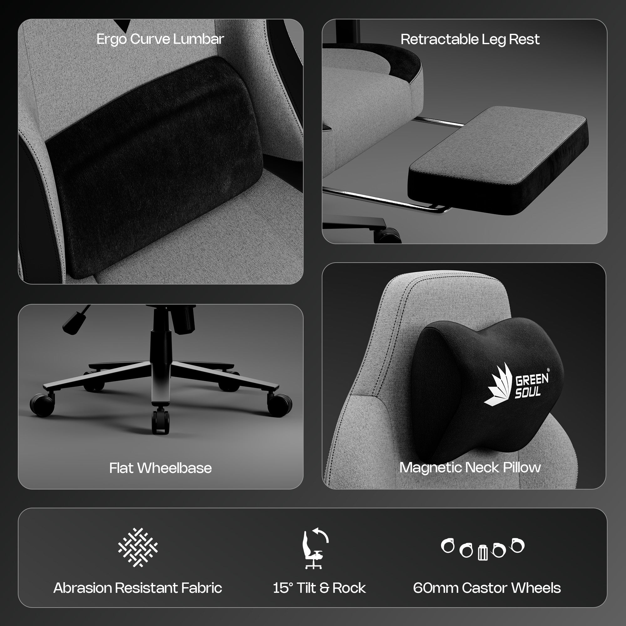 - Premium Craftsmanship : The Greensoul gaming chair features breathable, abrasion-resistant fabric and ultra-fine stitching, offering durability and a sleek, tech-forward design built for serious gamers.