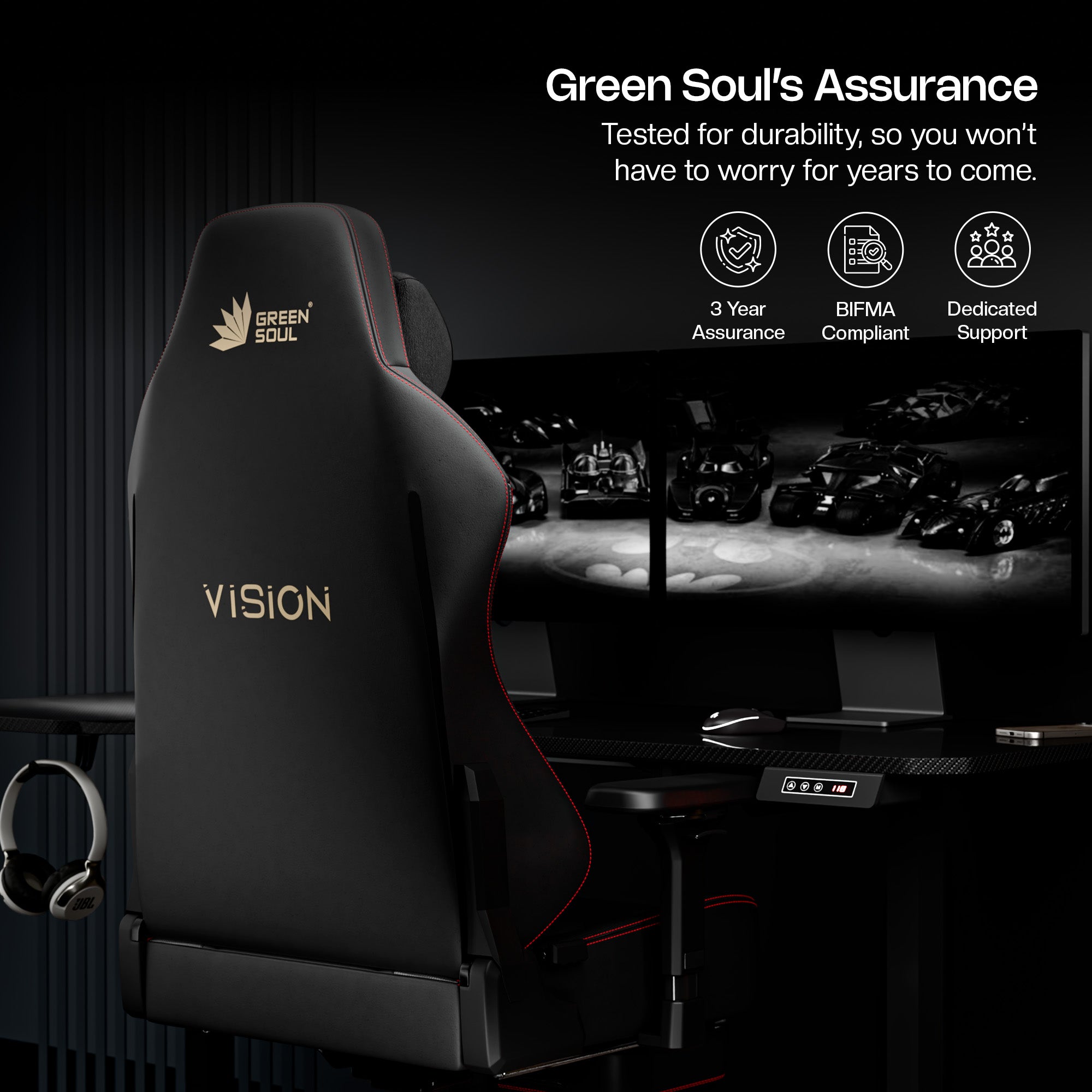Green Soul Vision Pro V2 Premium Fabric 4D Armrests & Flat Wheelbase Ergonomic Gaming Chair