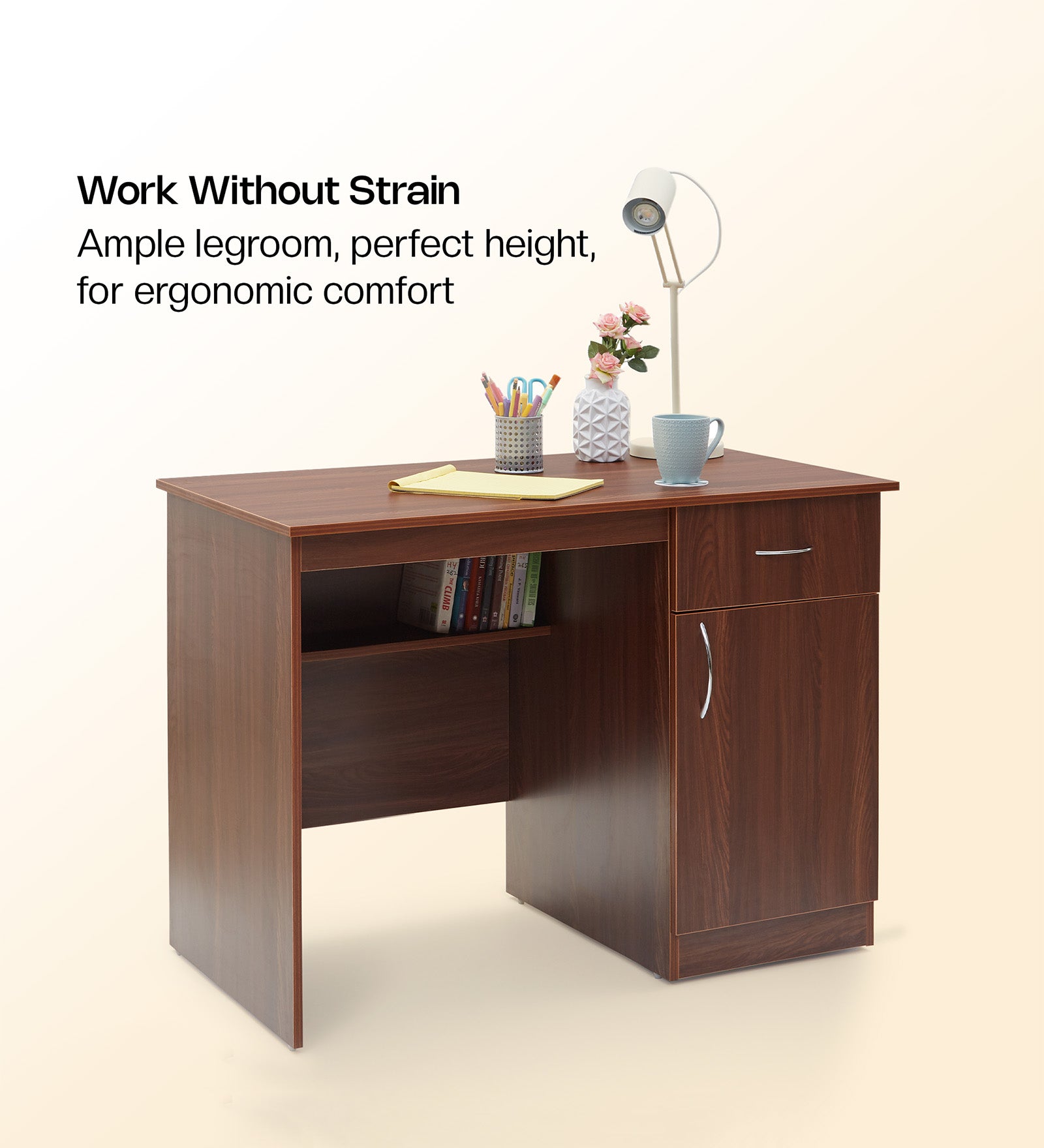 - 3. The 1 surface top, 1 drawer, 1 shelf, and 1 cabinet provide ample storage and organization options. A generous total load capacity of 65 kg, including 40 kg on the table, 10 kg each for the drawer & shelf, and 15 kg for the cabinet, you can store all your favorite items with ease and confidence.