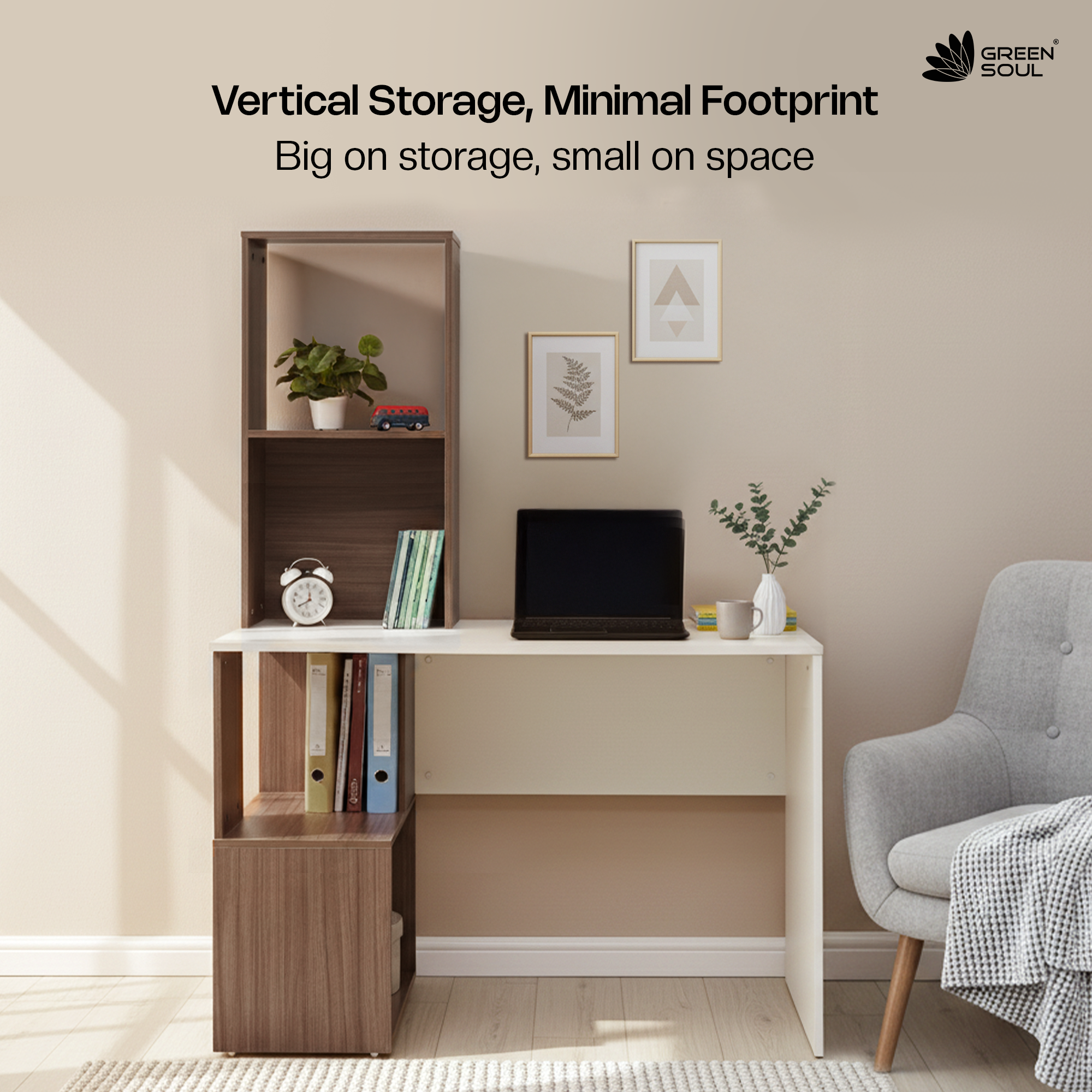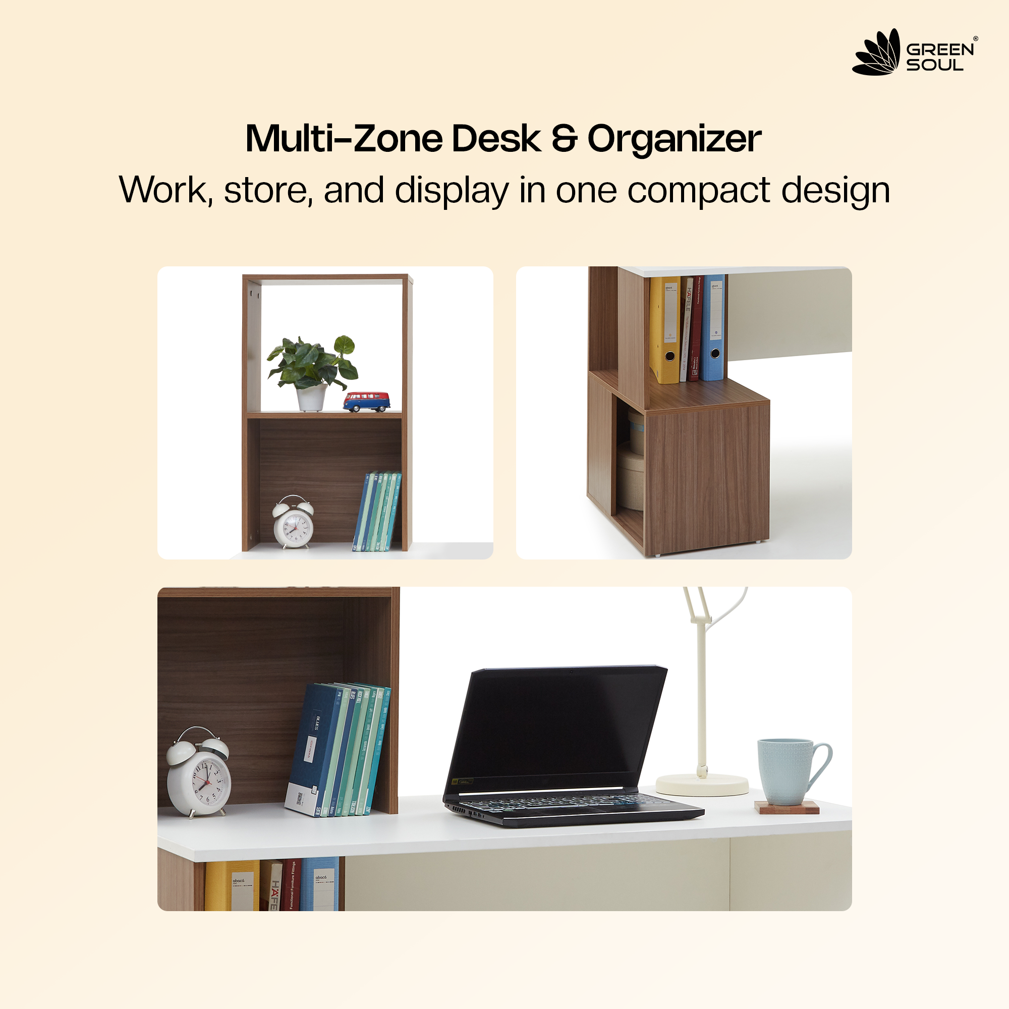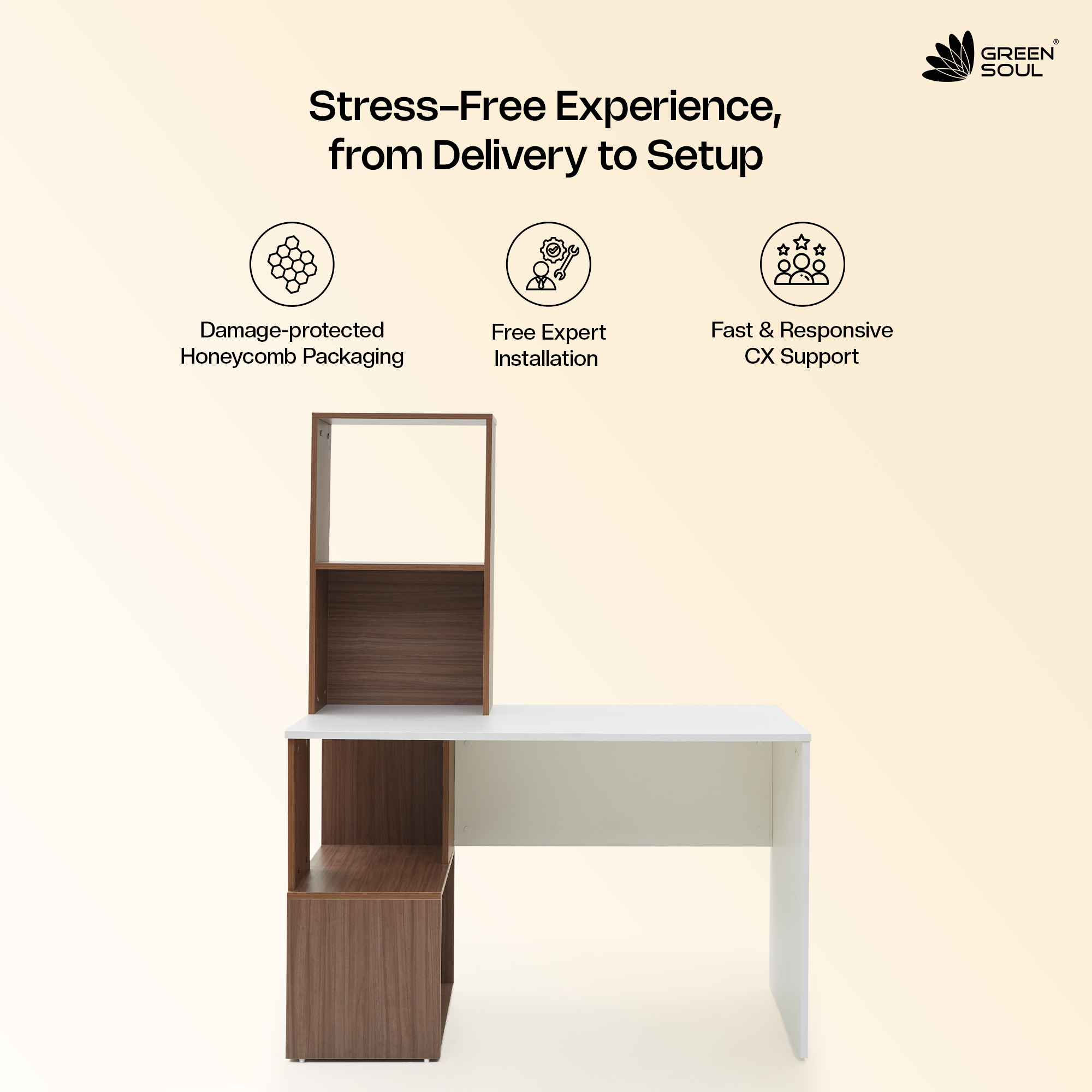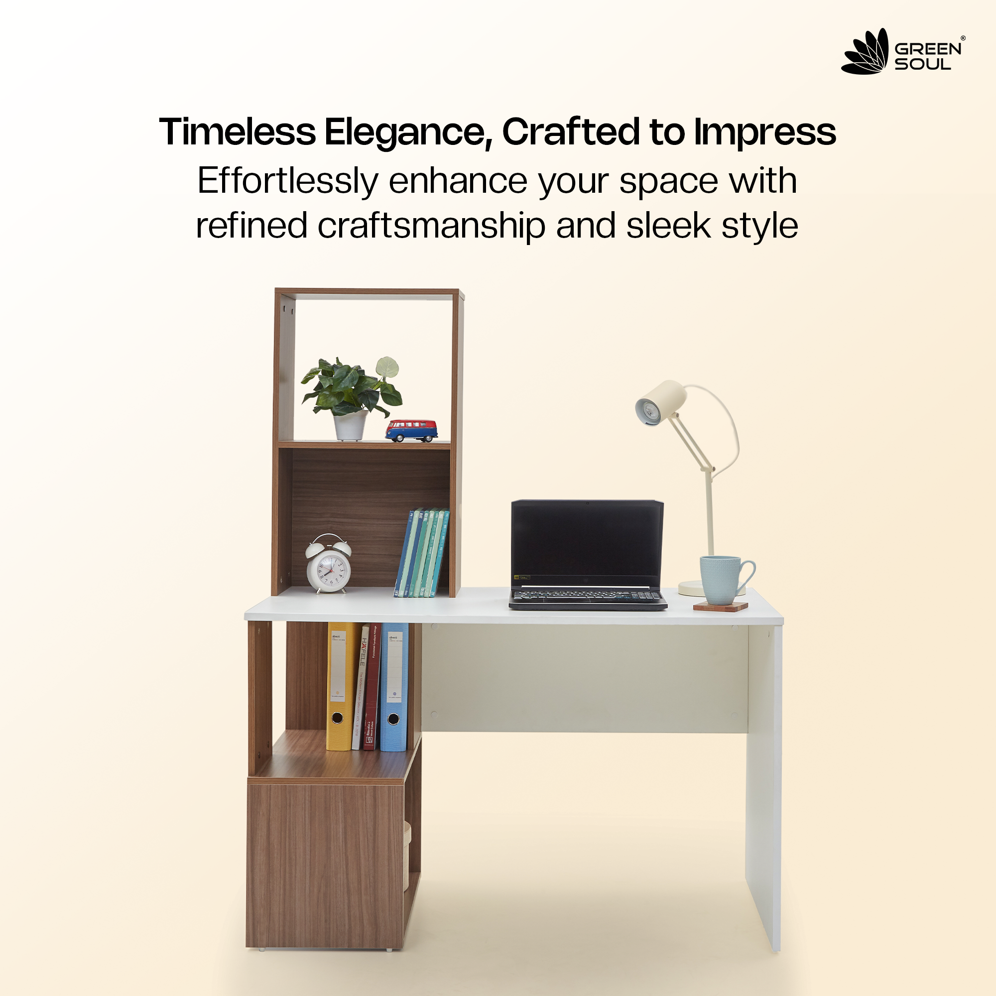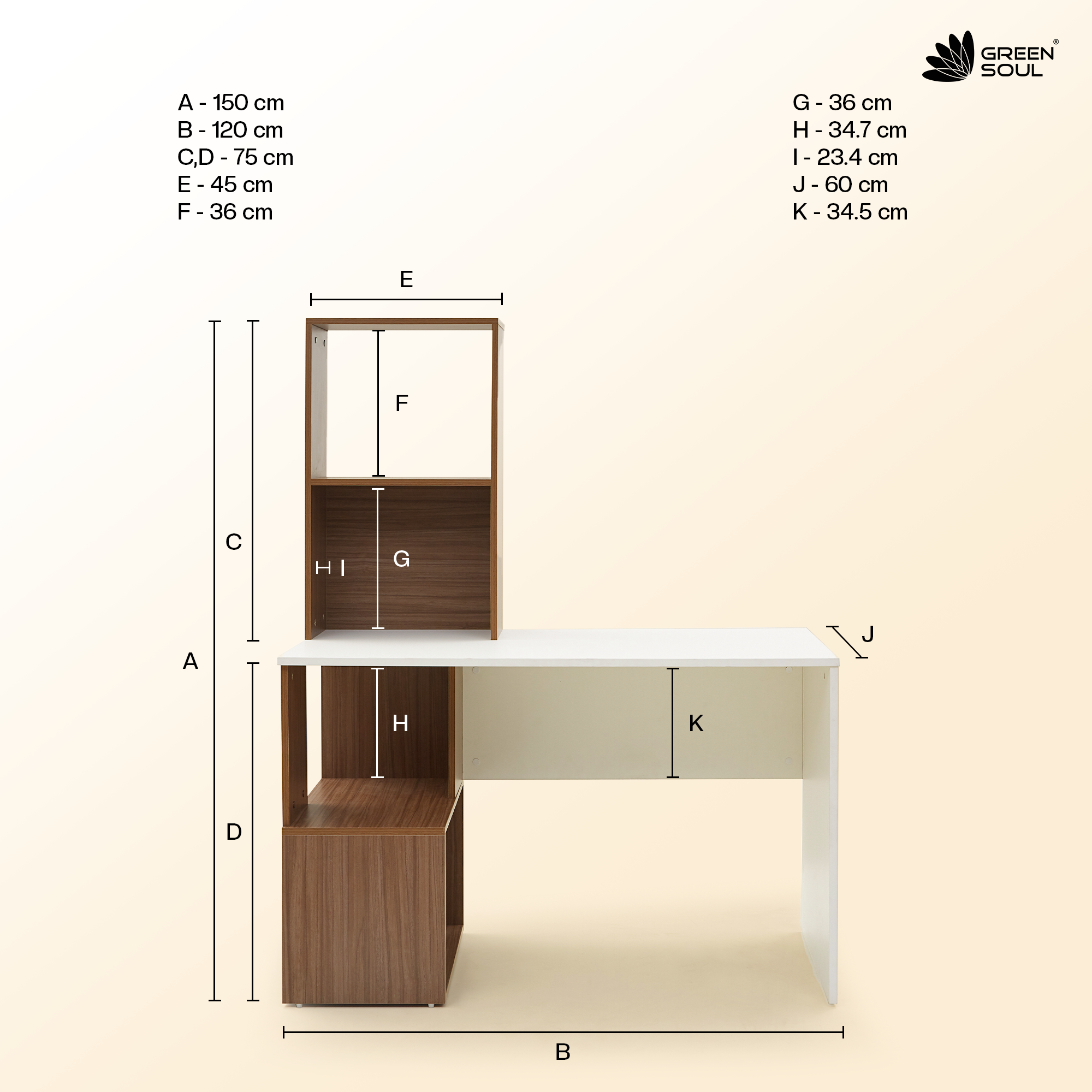 Introducing the Green Soul Premium Vermont Study Table - the perfect writing and computer table for optimizing productivity and inspiring creativity. Made of premium quality engineered wood and robust particle board, this study table is built to last. The 17mm thickness ensures durability and stability, while the classic Lorrain Walnut Brown and Frosty white finish with a sleek suede texture adds sophistication to any space.
