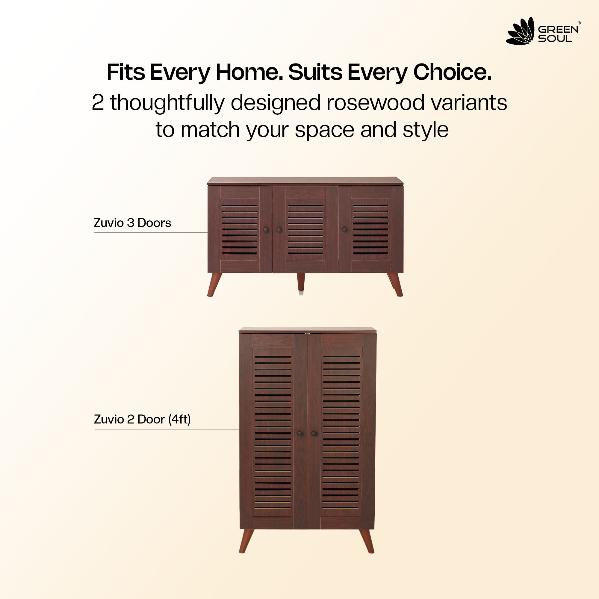 Taller, sleeker, and more spacious — the Zuvio 2 Door Tall Wooden Shoe Rack is perfect for maximizing vertical space. Standing 4 feet high, this elegant shoe rack wooden model fits up to 16 pairs with ease. Crafted with precision, it features ventilated doors, sturdy drum locks, and an elevated design for effortless maintenance. The top platform serves as a functional shelf for bags or décor. Ideal for families or shoe lovers, this wooden shoes rack with doors is a smart blend of storage and style. Upgrade your entryway or bedroom with this vertical space-saver.