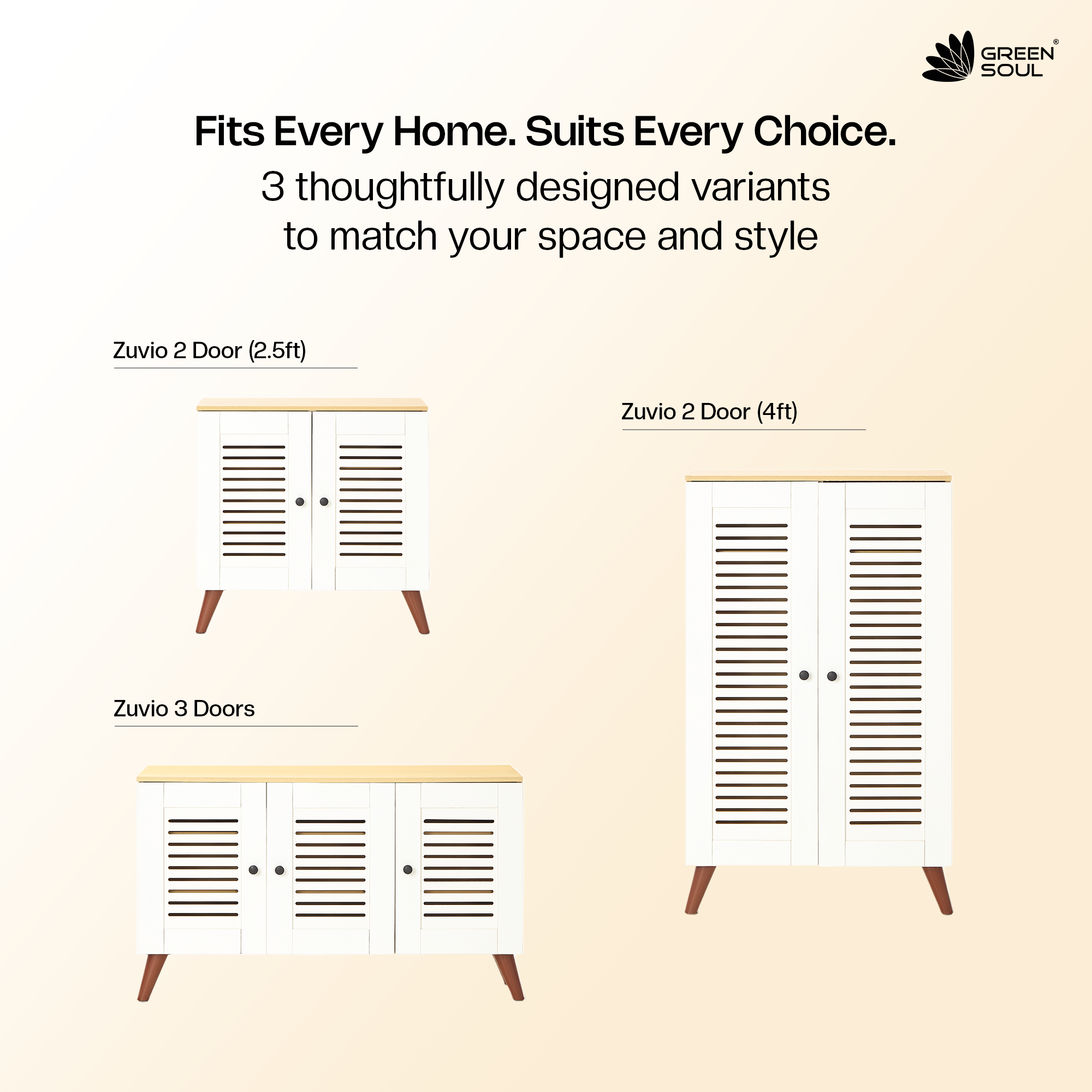 Zuvio 2 Door Engineered Wood Ventilated Shoe Rack 3 Shelves 2 Doors Stores up to 10 Pair of Shoes