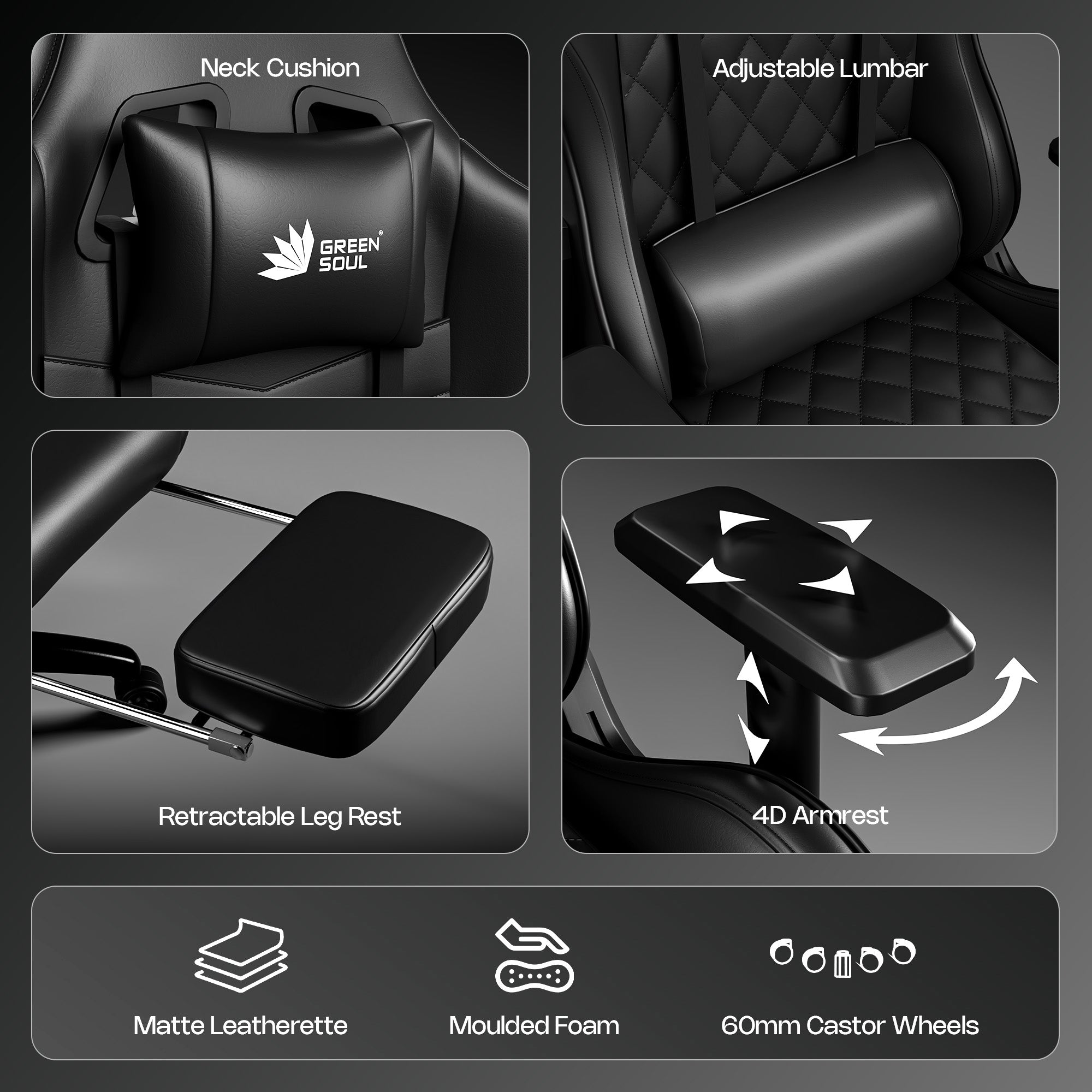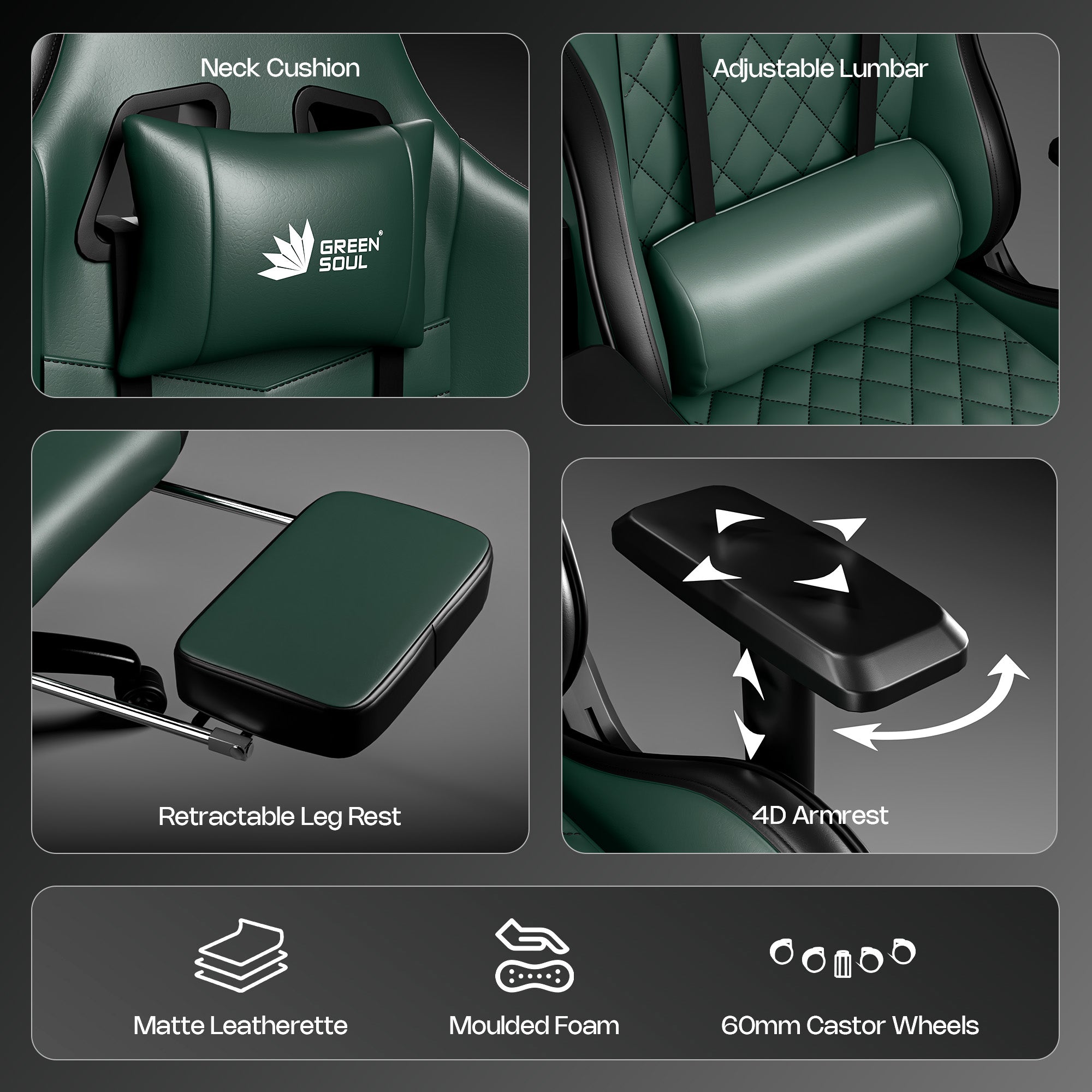Green Soul Ghost Gaming Chair With Integrated Footrest