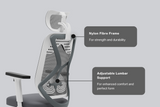- Spectacular look and design : The premium quality nylon with sophisticated colour combination accentuates the look of the chair along with it’s ergonomic design. It’s the chair that defines power and commands class.
