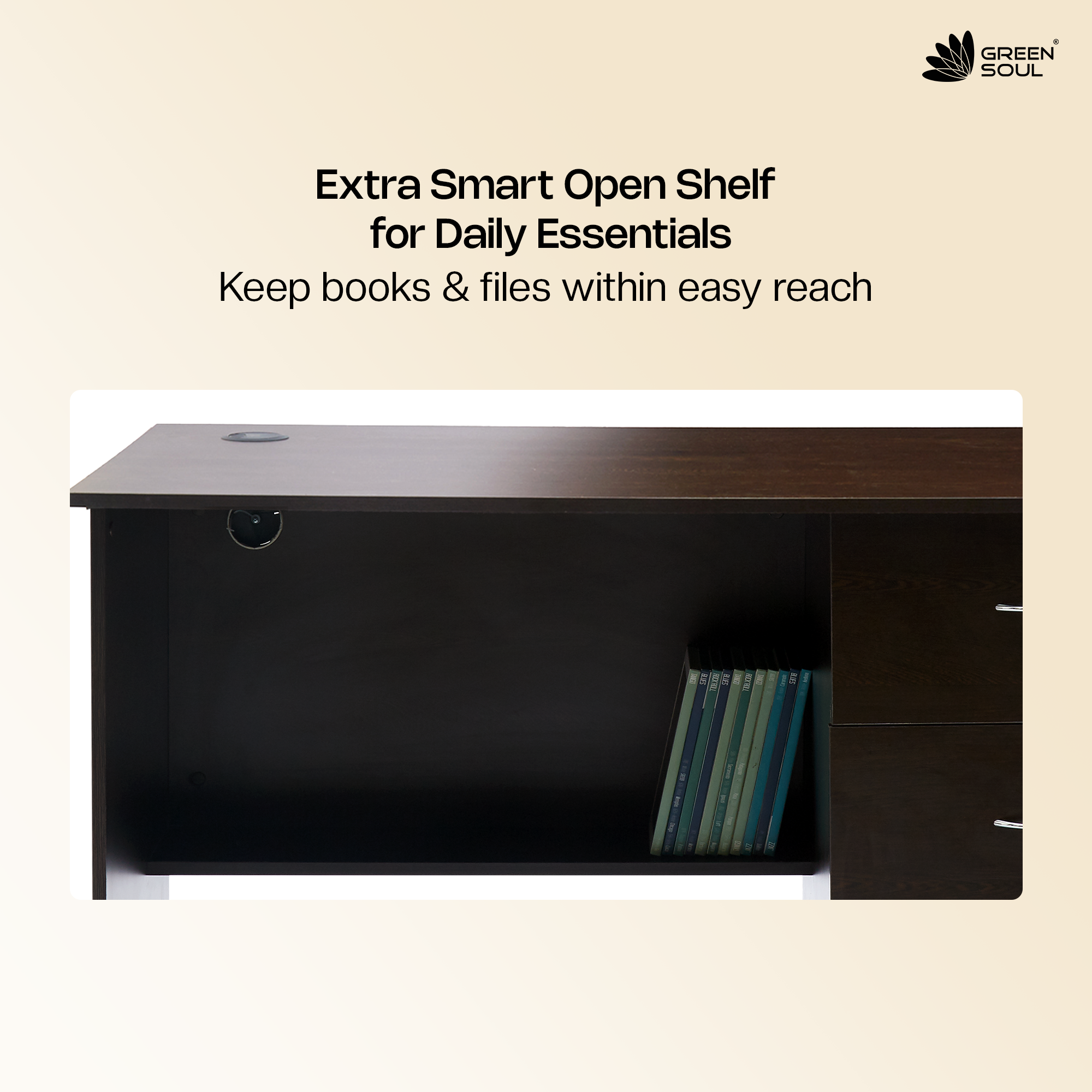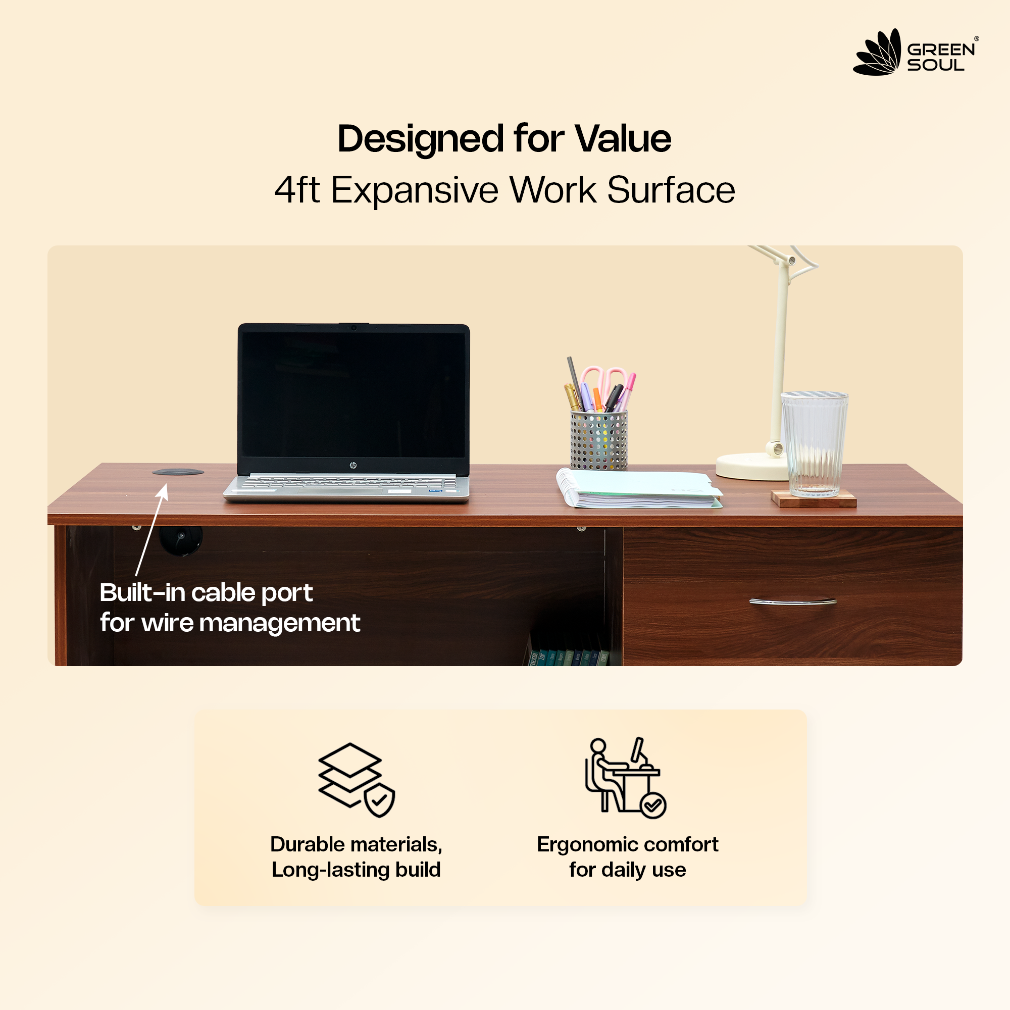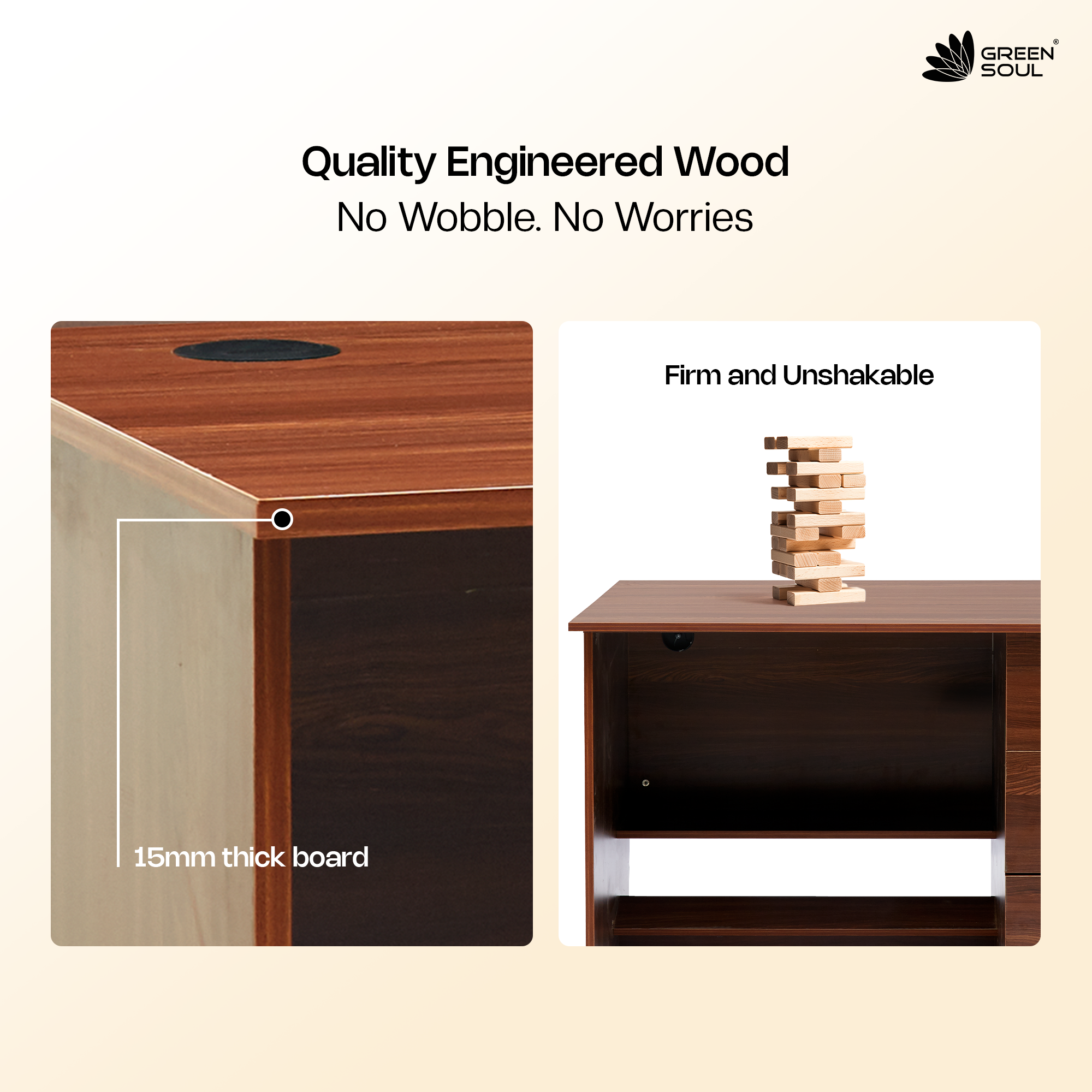 Introducing the Green Soul Premium Nexus Study Table - the perfect writing and computer table for optimizing productivity and inspiring creativity. Made of premium quality engineered wood and robust particle board, this study table is built to last. The 15mm thickness ensures durability and stability, while the classic Walnut Brown and Wenge finish with a sleek suede texture adds sophistication to any space.