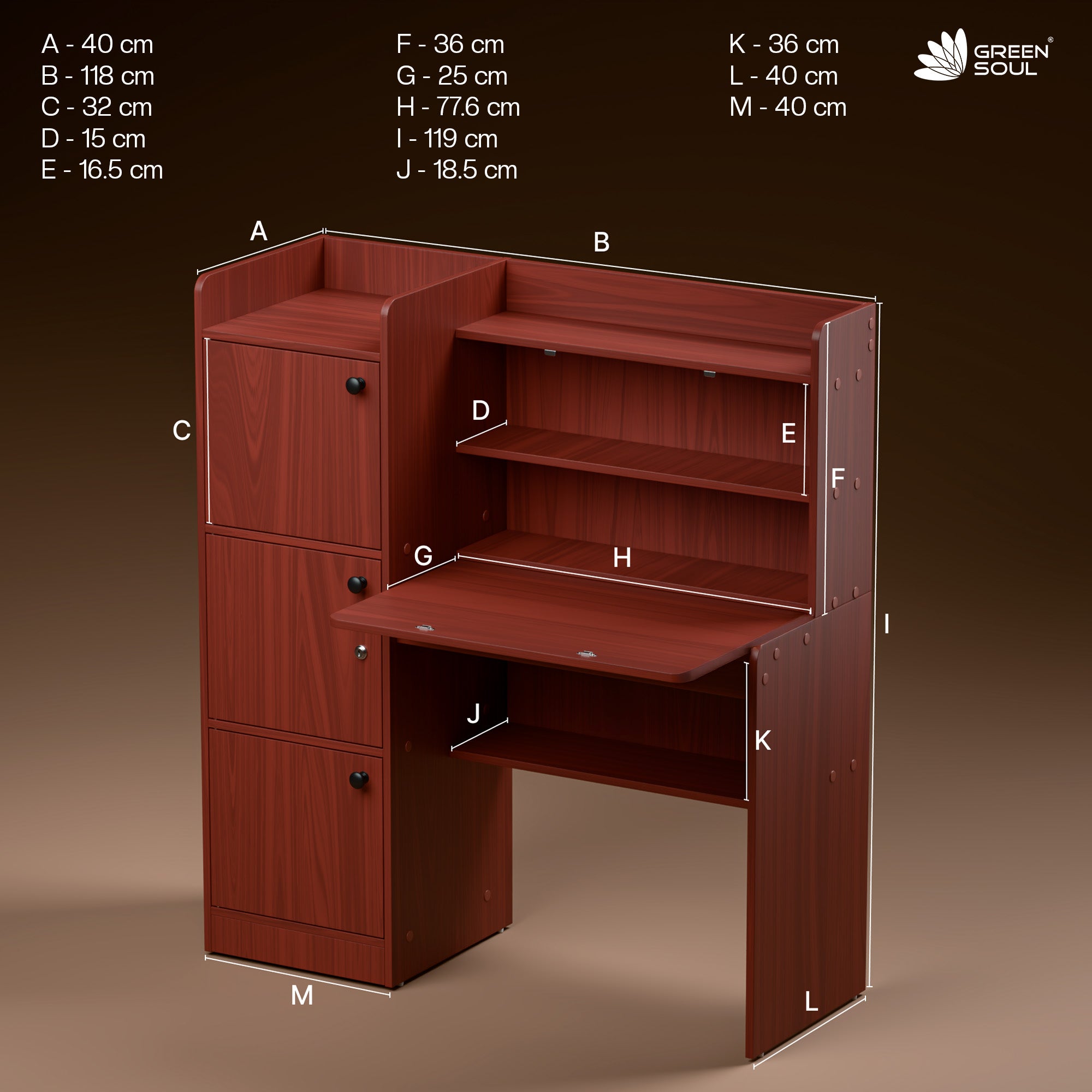 - 𝗜𝗡𝗧𝗘𝗟𝗟𝗜𝗚𝗘𝗡𝗧 𝗦𝗧𝗢𝗥𝗔𝗚𝗘 𝗟𝗔𝗬𝗢𝗨𝗧: Includes a lockable cabinet, open shelves, and a unique collapsible flap shelf to keep your essentials organized and dust-free. Ideal as a study table with book shelf or office table for home.