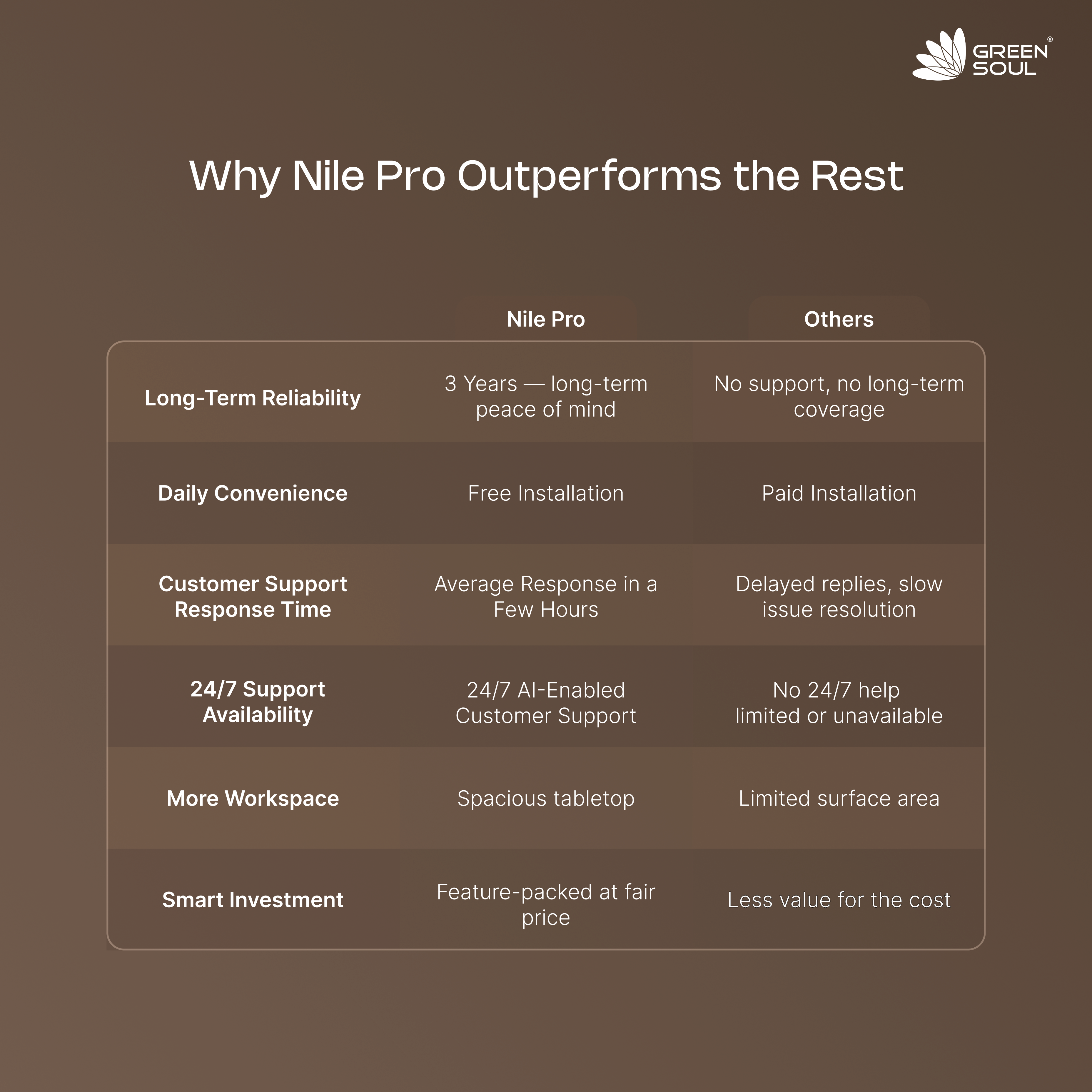 - 𝗣𝗥𝗘𝗠𝗜𝗨𝗠 𝗙𝗜𝗡𝗜𝗦𝗛 & 𝗗𝗘𝗦𝗜𝗚𝗡: The Nile Pro comes in a sleek Safeli Brown suede finish that complements any interior perfect as a computer table, study table, or office desk in modern home settings.